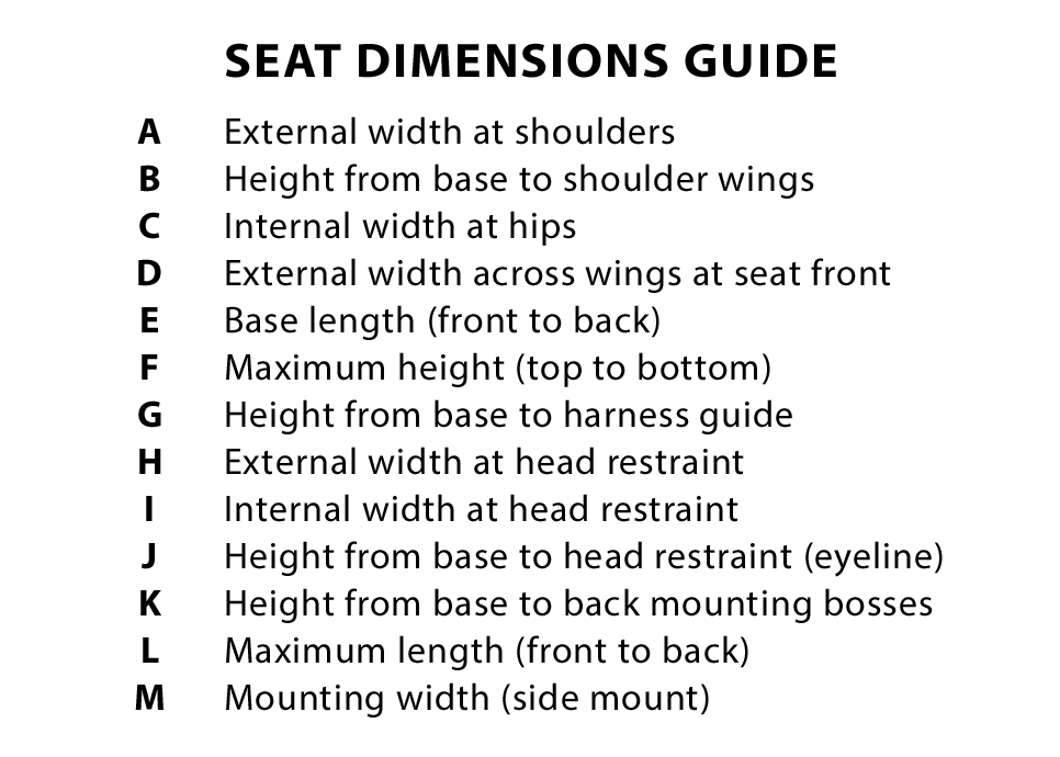 | Sizes | WT - Wide & Tall WTHR - Wide & Tall with Head Restraint |